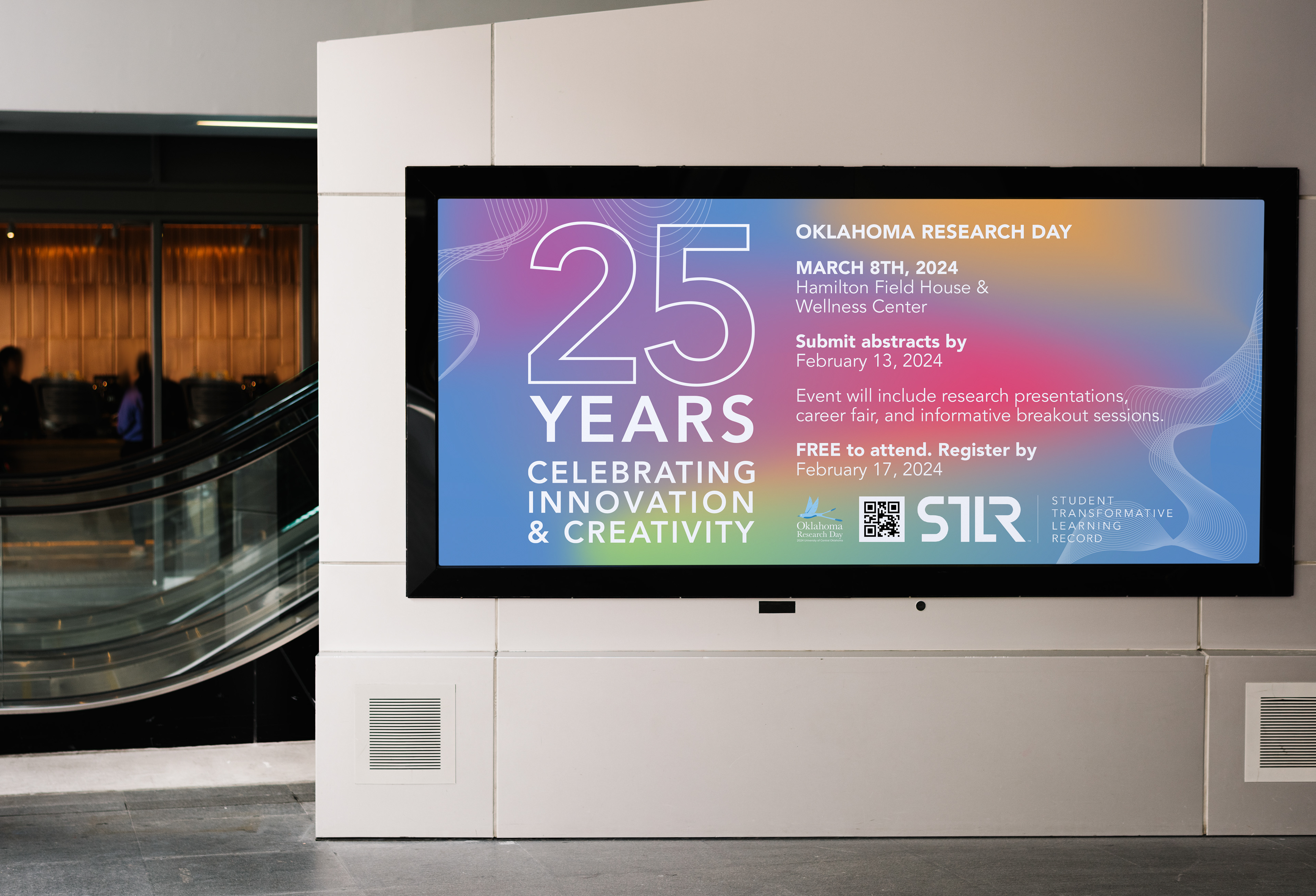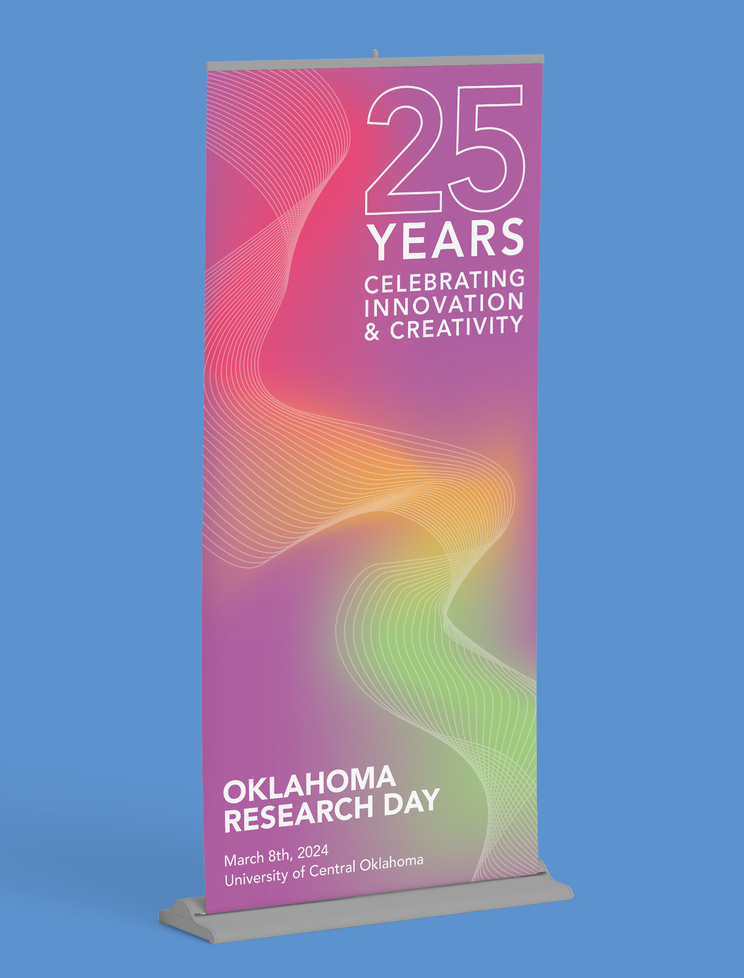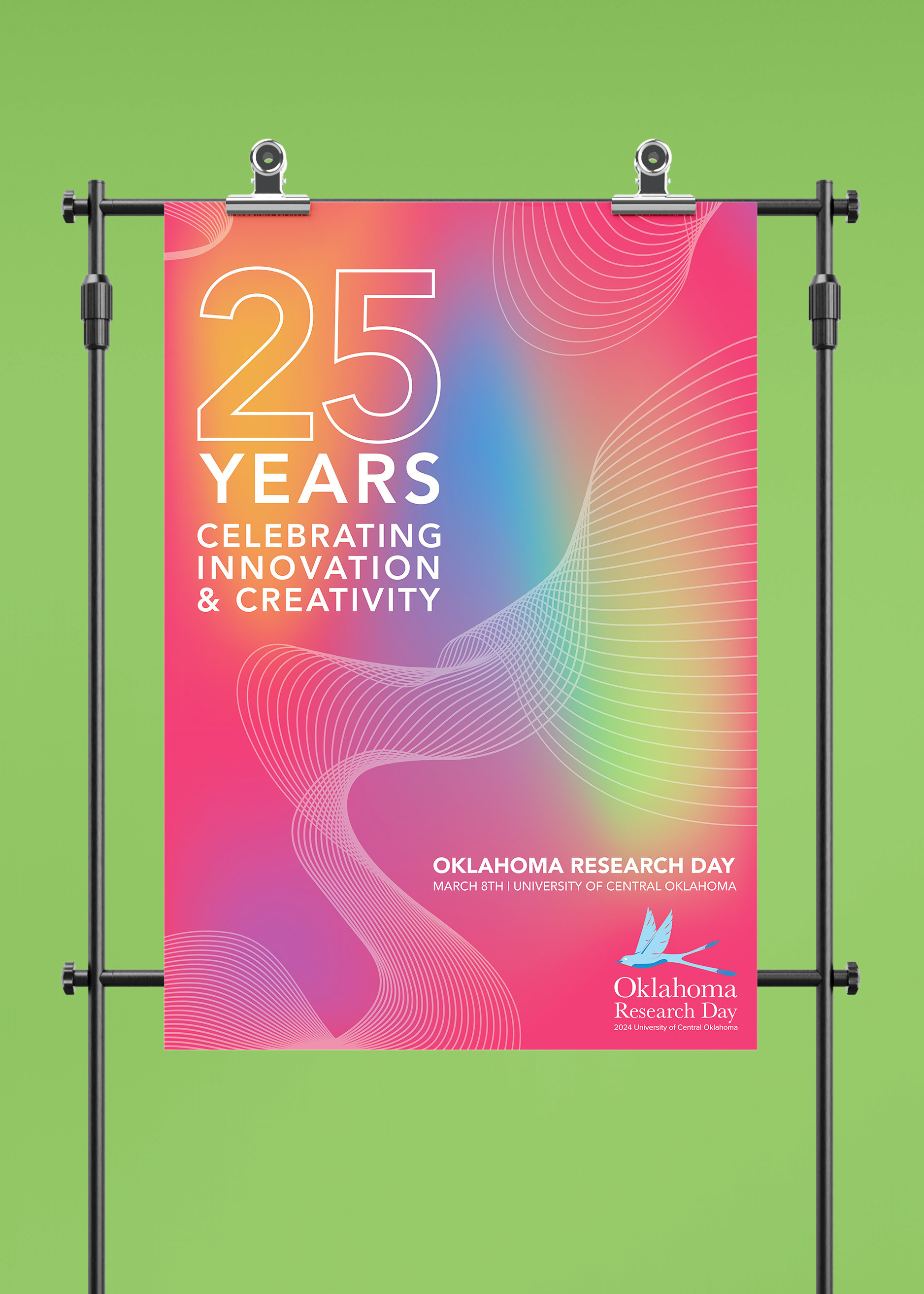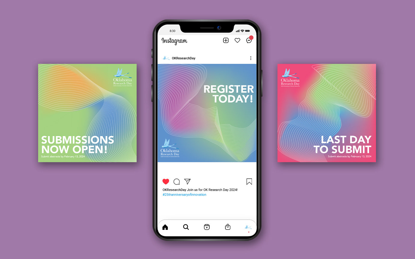 Proposed campaign using never-ending lines, showing the continuity of innovation that students and faculty bring every year to Oklahoma Research Day.