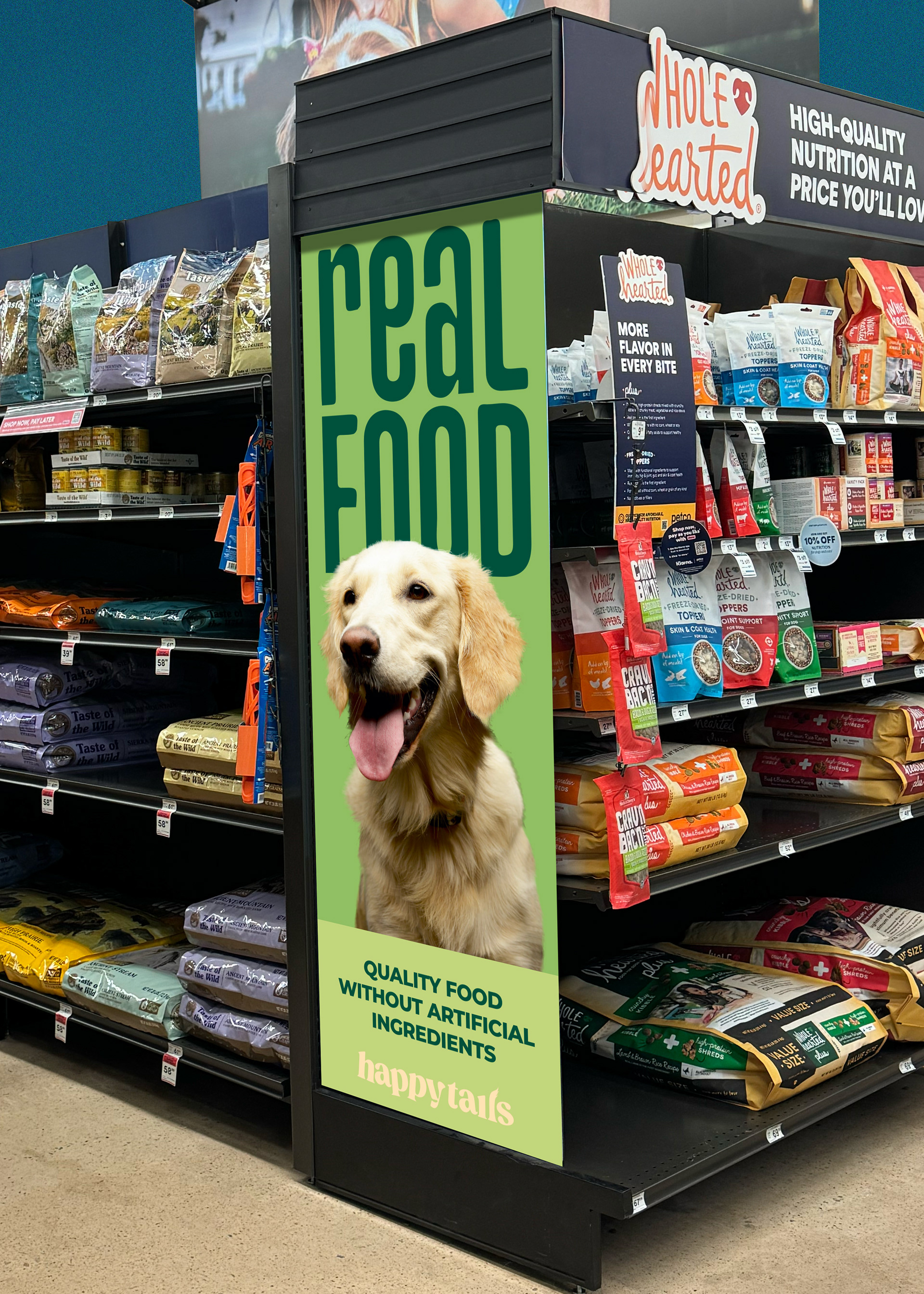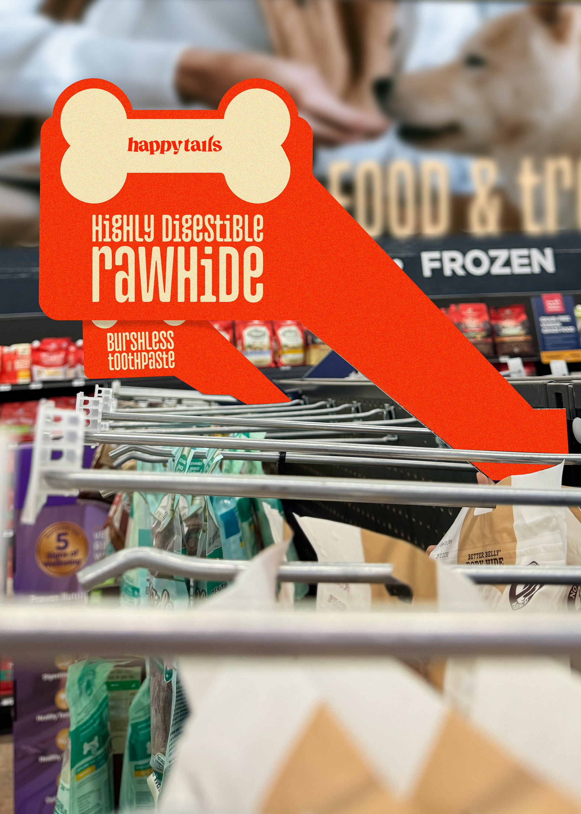 Happy Tails: A paradise for your four-legged friend! This store is designed to be every dog's dream come true, offering a wide variety of products, services, and experiences for furry besties.