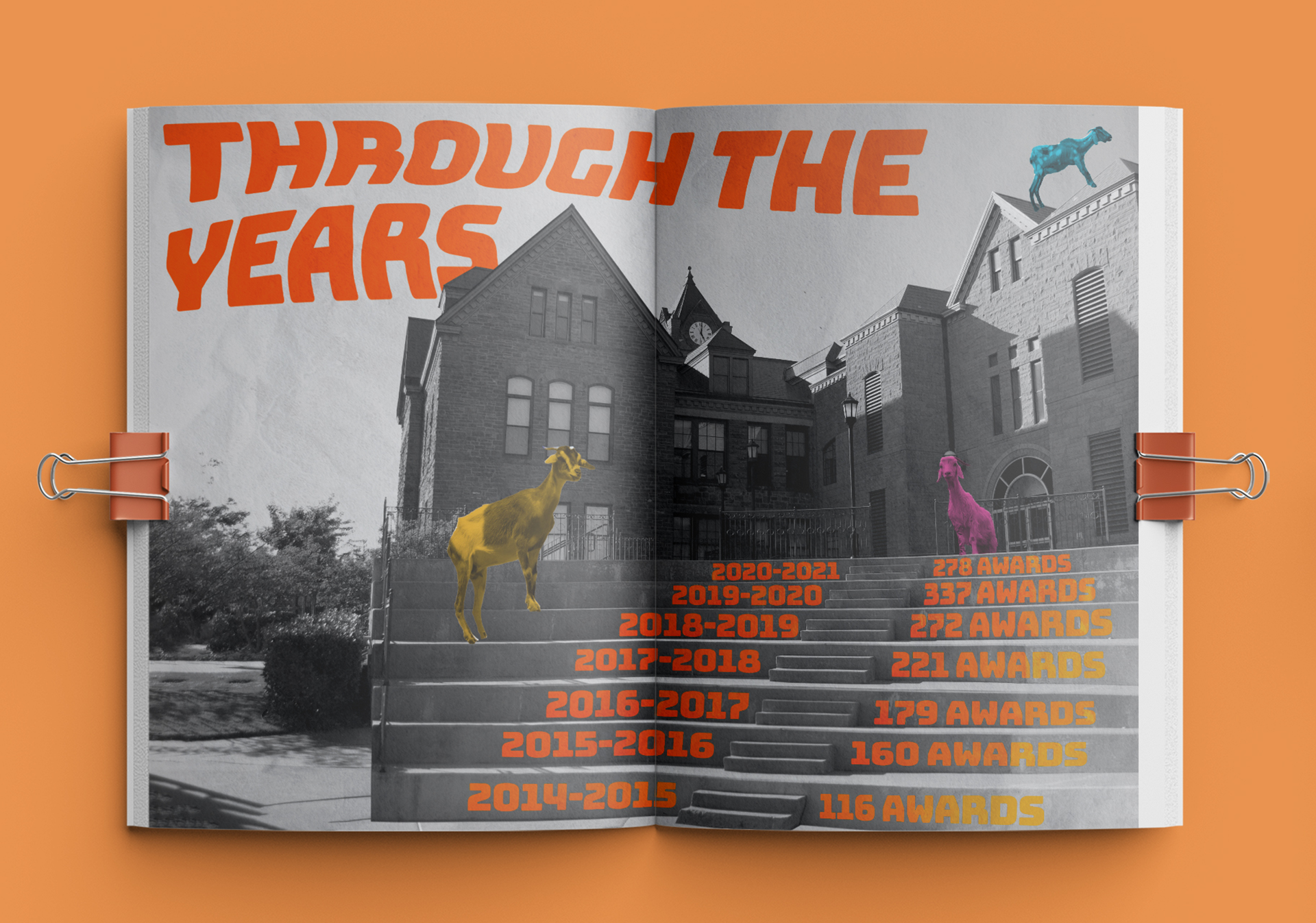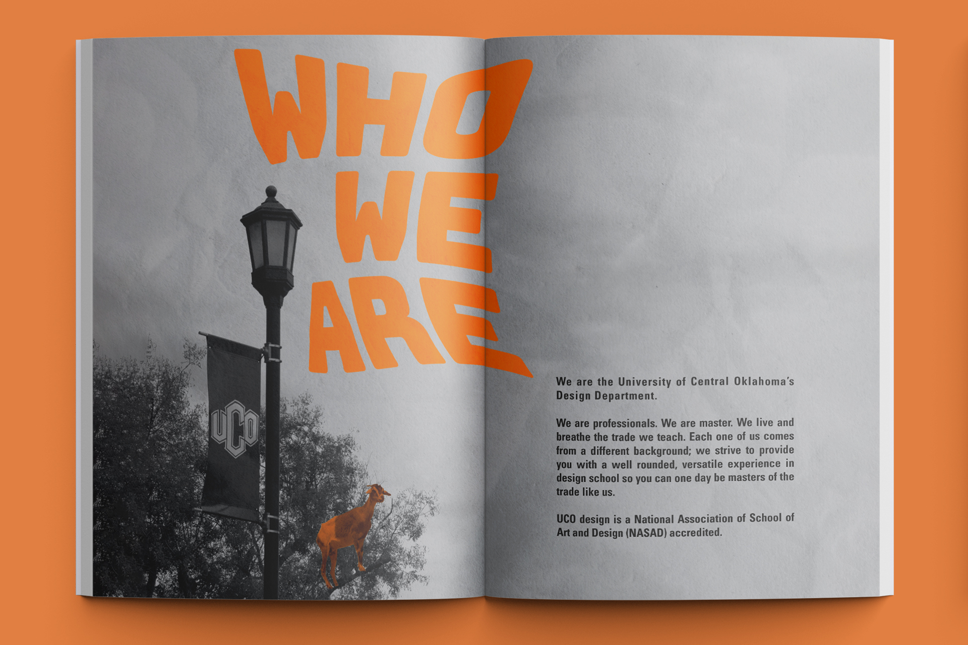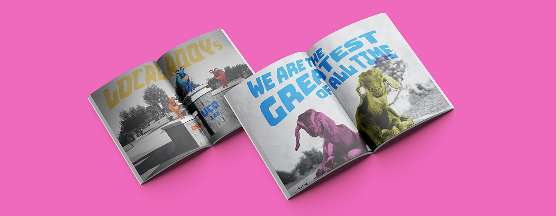 UCO Design Annual Report for 2022 revolving around the theme "The GOAT," symbolizing UCO School of Design being the Greatest Of All Time in the design industry.