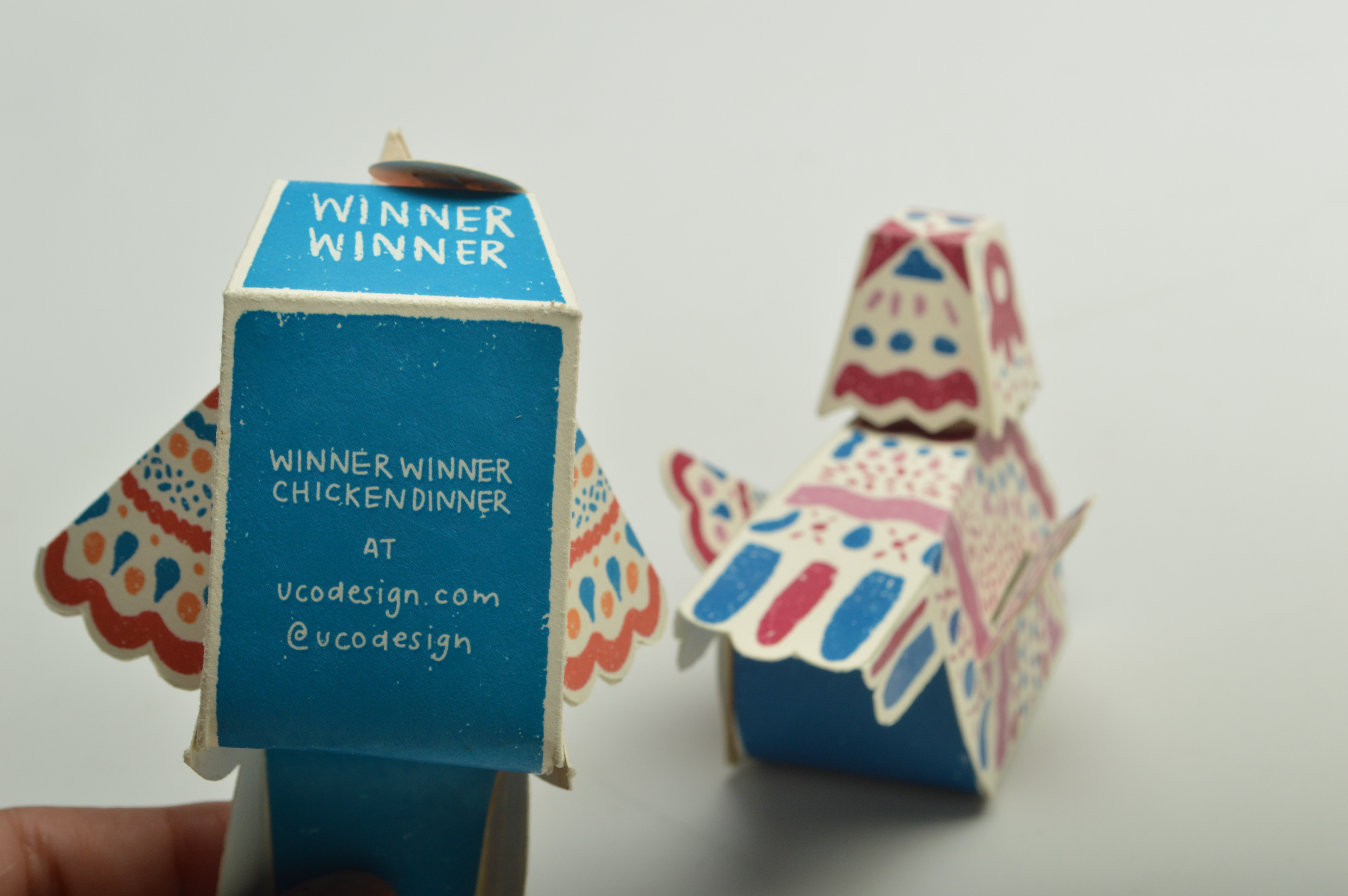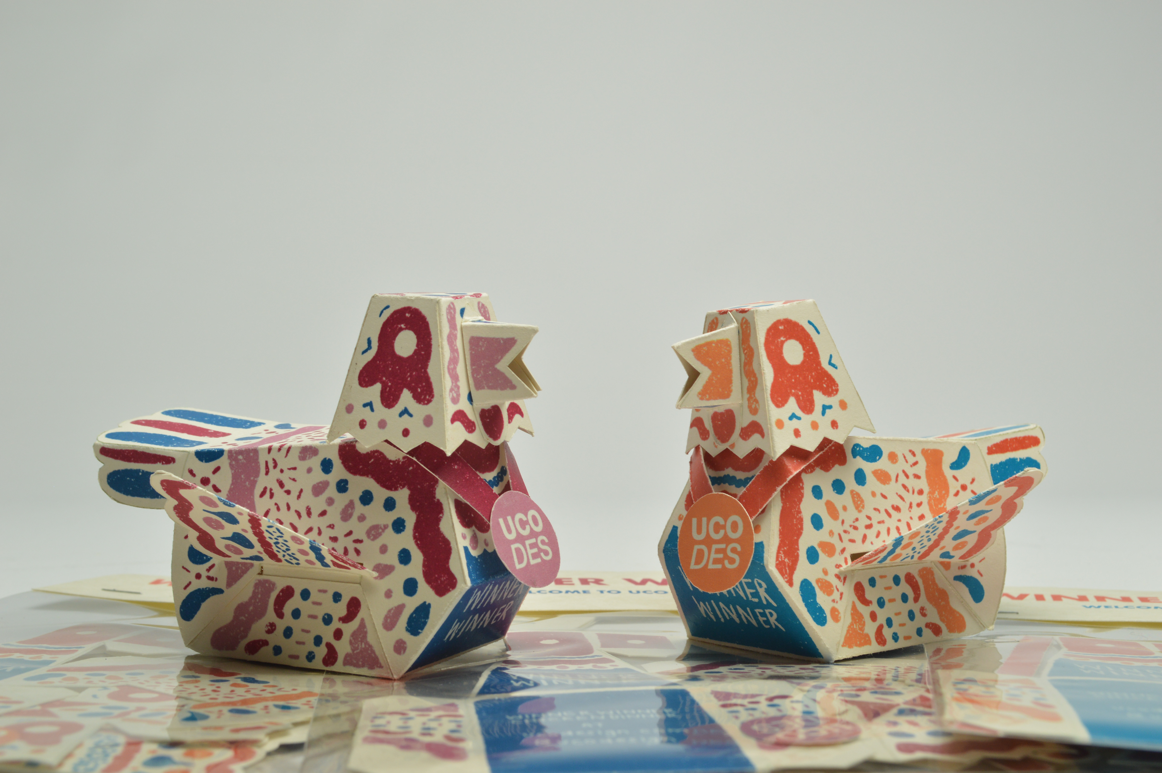 Winner Winner, Chicken Dinner! Is a paper toy design for the UCO School of Design embodies the spirit of playful creativity while celebrating the thrill of victory.